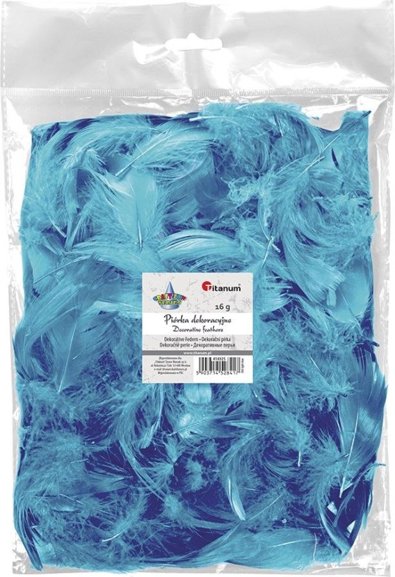 Piórka dekoracyjne, kolor: jasnoniebieskie. Opakowanie 16 g.