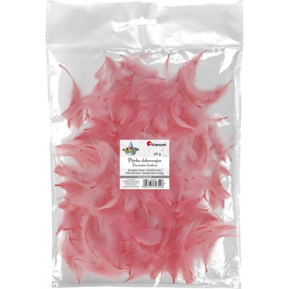 Piórka dekoracyjne, kolor: róż pastelowy, opakowanie 16 g.