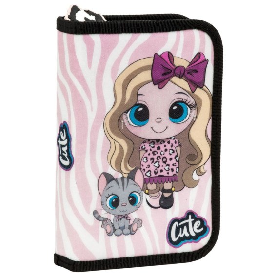 Piórnik posiada jedną komorę zapinaną na zamek błyskawiczny oraz dwie wewnętrzne klapki. Suwak zakończony jest ozdobnym pullerem. Wnętrze piórnika posiada liczne zakładki na akcesoria oraz miejsce na plan lekcji i tabliczkę mnożenia.