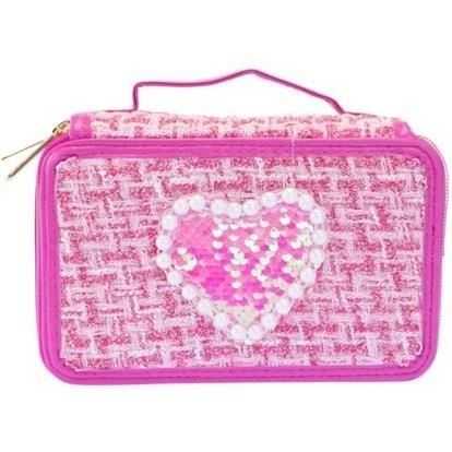 Stylowy piórnik Girabrilla wykonany jest z modnej tweedowej tkaniny, to doskonały wybór dla każdej dziewczynki, która lubi łączyć modę z praktycznością. Perłowe zdobienia i połyskujące serduszko nadają mu wyjątkowego charakteru. Piórnik posiada 3 pojemne przegrody - zapewniają idealny porządek i łatwy dostęp do wszystkich przyborów szkolnych. W środku znajdziesz wszystko, czego potrzebujesz do nauki: kredki i pisaki w pięknych kolorach,ołówek, długopis i temperówkę, gumkę do ścierania i linijkę.