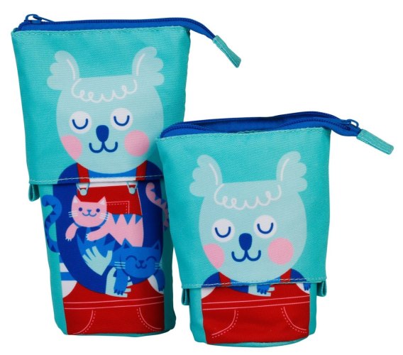Piórnik (saszetka wysuwana), zamykany na zamek, Wykonany z wytrzymałego materiału (poliester), środek podszyty podszewką, zawiera 3 małe przegródki, Rozmiar można dostosować do potrzeb: góra jest ruchoma i można ją przesuwać w górę lub w dół tak aby regulować wielkość piórnika, Praktyczny – do wykorzystania w szkole, w domu, w biurze: do przechowywania produktów szkolnych, biurowych, małych i trochę większych rzeczy codziennego użytku, kosmetyków itp. Wymiary: złożony 11 x 14 cm, rozłożony 11 x 22 cm, Sztywna podstawa o wymiarach 8 x 8 cm – można postawić na biurku jako przybornik