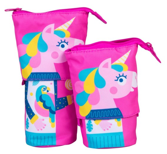 Piórnik (saszetka wysuwana), zamykany na zamek, Wykonany z wytrzymałego materiału (poliester), środek podszyty podszewką, zawiera 3 małe przegródki, Rozmiar można dostosować do potrzeb: góra jest ruchoma i można ją przesuwać w górę lub w dół tak aby regulować wielkość piórnika, Praktyczny – do wykorzystania w szkole, w domu, w biurze: do przechowywania produktów szkolnych, biurowych, małych i trochę większych rzeczy codziennego użytku, kosmetyków itp. Wymiary: złożony 11 x 14 cm, rozłożony 11 x 22 cm, Sztywna podstawa o wymiarach 8 x 8 cm – można postawić na biurku jako przybornik
