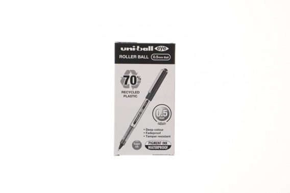 Pióro kulkowe UNI UB-150E w nowym ekologicznym wydaniu! Teraz wykonane z 70% PLASTIKU POCHODZĄCEGO Z RECYKLINGU – kultowe japońskie pióro kulkowe – postrzegane jako lider w swojej grupie - solidny produkt o doskonałej jakości – kapilarny system podawania tuszu zapewnia komfortowe, nieprzerwane pisanie do ostatniej kropli tuszu – zachowuje cały czas taką samą grubość linii i intensywne, wyraźne kolory – pigmentowy tusz jest wodoodporny, nie blaknie w słońcu i nie przesiąka przez papier – bezpieczna skuwka - specjalny otwór umożliwiający oddychanie w przypadku jej połknięcia – końcówka ze stali nierdzewnej pozwala na gładkie prowadzenie pióra po kartce, bez konieczności dużego nacisku – kulka z węglika wolframu – średnica kulki: 0,5 mm – grubość linii pisania: ok. 0,3 mm