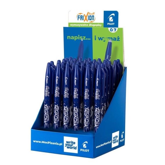 Pisz płynnie piórem kulkowym Frixion, usuwaj błędy, ogrzewając je za pomocą silikonowej końcówki i poprawiaj je szybko i sprawnie! Tusz Metamo, wrażliwy na zmiany temperatury, został opatentowany przez Pilot'a. Dzięki niemu PILOT zrewolucjonizował rynek artykułów piśmiennych! . Opływowy kształt i dekoracyjny tatuaż sprawiają, że Frixion posiada swój młodzieńczy styl. Nie powinien być stosowany przy wypisywaniu oficjalnych dokumentów.