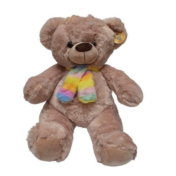 Pluszowy miś to doskonały towarzysz do zabawy i przytulania dla każdego dziecka. Pluszak pokryty jest niezwykle przyjemnym w dotyku materiałem imitującym futerko i wypełniony miękkim pluszem. Jego przyjazny wyraz twarzy z szerokim uśmiechem z pewnością zachwyci i przyciągnie uwagę najmłodszych. Ponadto miś posiada kolorowy szalik, który dodaje mu niepowtarzalnego uroku. Samodzielnie potrafi utrzymać równowagę podczas siedzenia. Pluszak doskonale sprawdzi się jako prezent, który zapewni mnóstwo radości, stając się nieodłącznym towarzyszem na wiele lat lub wspaniałym elementem dekoracyjnym dziecięcego pokoju. Maskotka posiada doszytą zawieszkę. Zalecane pranie ręczne. Wymiary produktu (siedzący): 42x37x40cm Skład: 100% poliester
