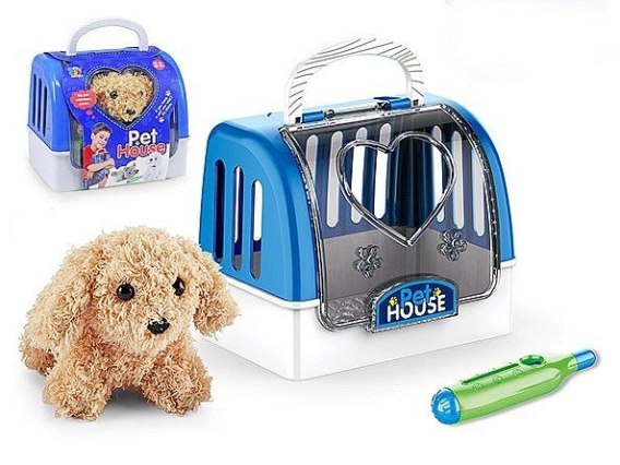Piesek pluszowy w klatce do przenoszenia; 18x12x16cm, Box