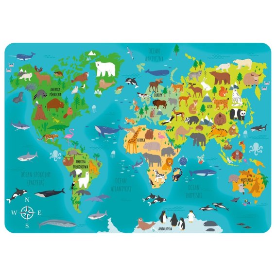 PODKŁADKA LAMINOWANA MAPA ŚWIATA-ZWIERZĘTA