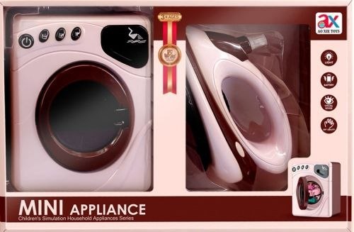 Zalety produktu: pralka posiada efekty dźwiękowe oraz świetlne, bęben pralki po włączeniu obraca się, posiada funkcje prania, podczas prania na elektronicznym wyświetlaczu odmierzany jest czas, po skończonym praniu można je wyciągnąć ze środka. Najwyższy czas aby zrobić pranie. Pozwól dziecku na wykonanie tej czynności domowej własnoręcznie we własnej pralce MEGA CREATIVE. Produkt ten idealnie odzwierciedla prawdziwy sprzęt domowy Dodatkowo w zestawie znajduje się żelazko, które po naciśnięciu przycisku wydaje dźwięk, możesz rozpocząć prasowanie. Zawartość zestawu: pralka funkcyjna, żelazko. Produkt wykonany z plastiku. Produkty są imitacją prawdziwych Wymiary/waga/baterie: wymiary produktu dł. x wys. x gł. cm : -pralka 15x20x12, -żelazko 22x12x10 wymiary opakowania dł. x wys. x gł. cm : 39x26x13, waga produktu bez opakowania kg : 0, 53 kg, waga produktu w opakowaniu kg : 0,95 kg. Wymaga zasilania bateriami pralka 3 x AALR06 1,5V, żelazko 2x AALR06 1,5V- nie załączono do zestawu. Zabawka przeznaczona dla dzieci w wieku: 3 . Pakowana w kartonik z okienkiem. W kartonie zbiorczym po 12/24 szt.