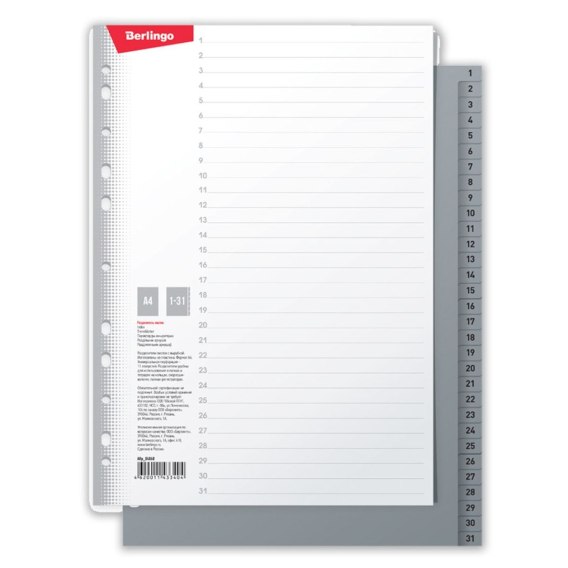 Przekładka numeryczna A4 szara 120g 31k 1-31 Berlingo (226203)