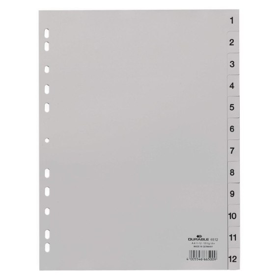 • Przekładka numeryczna szare PP 1-12 A4 szara Durable (651210)