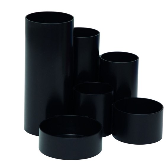 Organizer ekologiczny na biurko MAULtubo z serii greener@work w kolorze czarnym. Składa się z 6 pojemników o różnych rozmiarach, które zapewniają miejsce na drobne przedmioty, takie jak spinacze, szpilki, przybory do pisania, gumki, klej, nożyczki, linijki i pędzle. To funkcjonalne i eleganckie rozwiązanie na każde biurko, do kuchni, warsztatu czy na kosmetyki. Wykonany w ponad 85% z pokonsumenckiego tworzywa PS pochodzącego z recyklingu, ma wykończenie matowe i wyjątkowo trwałą konstrukcję, która zapewnia stabilność. Wyprodukowano w Niemczech. Gwarancja 3 lata. Wymiary (dł. x szer. x wys.): 15,3 x 15,2 x 12,6 cm.