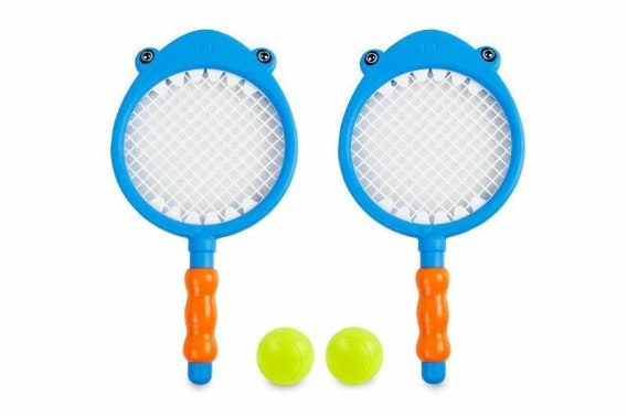 W zestawie: 2 rakietki w kształcie rekina, piłka, wym. produktu : 34 x 18 x 3 cm, wym. opakowania: 59 x 44 x 37 cm, 3+