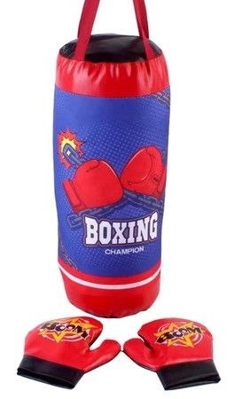 ZESTAW BOKSERSKI BOOM 50 CM, pak 24/12 zestaw niebiesko-czerwony worek bokserski + rękawice wymiary: 50 x 20 x 18 cm