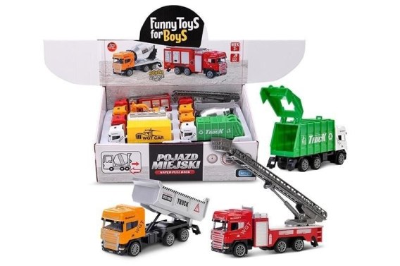 Długość auta 12 cm, materiał: metal + plastik, napęd: pull and back, ruchome elementy.