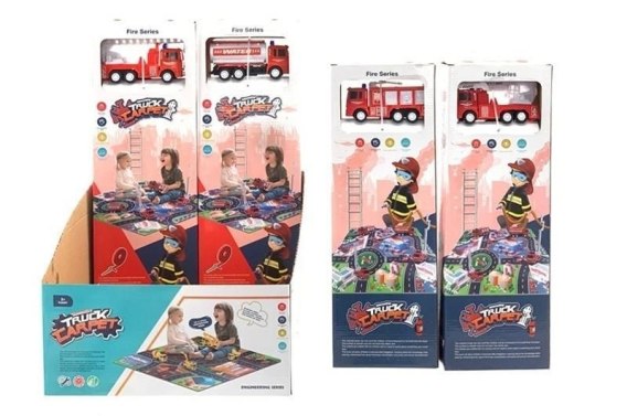 W zestawie: wóz strażacki, mata, dł. pojazdu 13 cm, wym. maty po rozłożeniu 70 x 80 cm, wym. opak. 46,5 x 16 cm x 5,5 cm, 3+