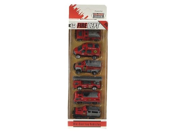 Zestaw 6 aut metalowych, straż pożarna; 32x10x4cm, W/B