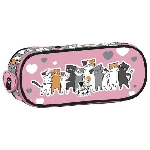 Jednokomorowy usztywniany piórnik zapinany na zamek z ozdobną zawieszką, którego wnętrze całkowicie wykończone jest podszewką.
