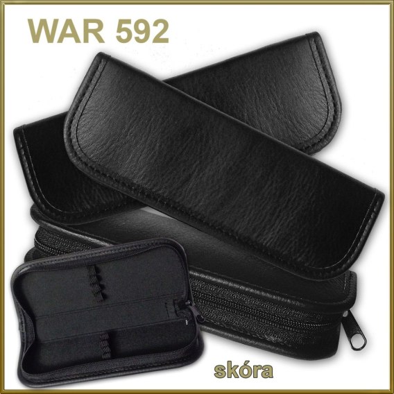 Mały twardy piórnik na długopisy wykonany z pierwszogatunkowej skóry naturalnej. W środku piórnika znajdują się gumki umożliwiające trzymanie długopisów. Piórnik o wymiarach 20x4,5x3,2[cm]. Pakowany po 22 sztuki w kartonie w 3 wersjach kolorystycznych, czarny, czerwony, szary. Piórnik bez wyposażenia.