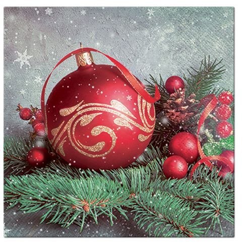 Serwetki Lunch BN Bauble on Twig czerwony papier [mm:] 330x330 Paw (SDL016900)