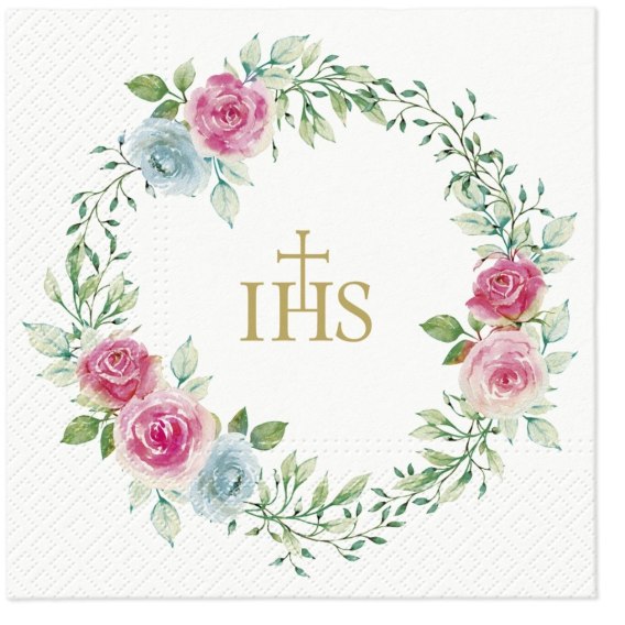 Serwetki Lunch komunia Delicate Roses mix nadruk bibuła [mm:] 330x330 Paw (SDL139400)