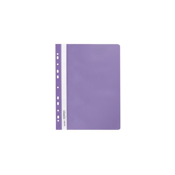 Skoroszyt wykonany z miękkiej folii PP z europerforacją umożliwiającą wpięcie do segregatora. Przednia okładka przezroczysta, aby łatwo zidentyfikować zawartość, tylna kolorowa. Wewnątrz klasyczny mechanizm z wąsem i listwą skutecznie zabezpieczający wpiętą zawartość. Na bocznej krawędzi wysuwany pasek do opisu zawartości. Dostępny w szerokiej gamie kolorystycznej.