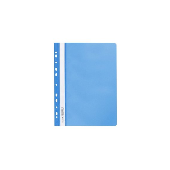 Skoroszyt wykonany z miękkiej folii PP z europerforacją umożliwiającą wpięcie do segregatora. Przednia okładka przezroczysta, aby łatwo zidentyfikować zawartość, tylna kolorowa. Wewnątrz klasyczny mechanizm z wąsem i listwą skutecznie zabezpieczający wpiętą zawartość. Na bocznej krawędzi wysuwany pasek do opisu zawartości. Dostępny w szerokiej gamie kolorystycznej.