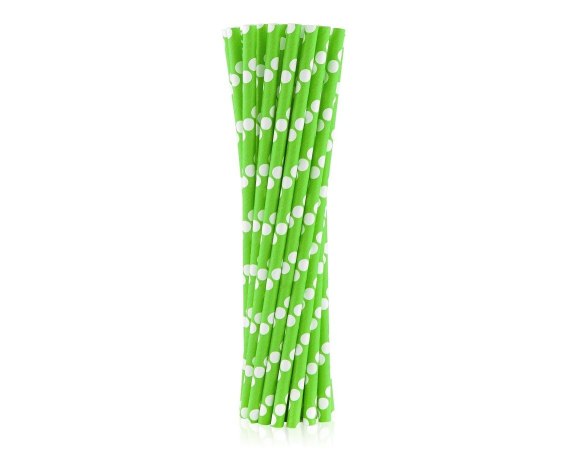 SŁOMKI PAPIEROWE PISTACJOWE W BIAŁE GROSZKI.