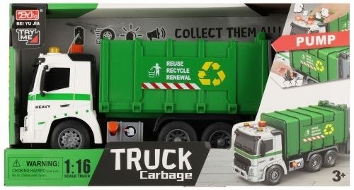 Zalety produktu: ciężarówka posiada funkcję pull&back, dzięki czemu po pchnięciu pojazdu do przodu kontynuuję jazdę samodzielnie, posiada efekty dźwiękowe oraz świetlne- klakson, odgłos wysypywania śmieci, żółte światełka na dachu, posiada ruchome elementy- podnoszoną klapę, obracany wirnik. Śmieciarka MEGA CREATIVE to doskonały atrybut podczas próby nauczenia swoich Pociech zasad segregacji odpadów oraz dbania o środowisko. W trakcie zabawy ulubionym samochodem, dziecko posiądzie niezbędną dla naszej Planety wiedzę! Zawartość zestawu: Śmieciarka. Zabawka wykonana z plastiku. Wymiary/waga/baterie: wymiary produktu (dł. x wys. x gł.)[cm]: 27x12x9, wymiary opakowania (dł. x wys. x gł.) [cm]: 32x18x13, waga produktu bez opakowania [kg]: 0,38 kg, waga produktu w opakowaniu [kg]: 0,56 kg, wymaga zasilania bateriami 3 x AG13- załączono do zestawu. Zabawka przeznaczona dla dzieci w wieku: 3+. Pakowana w karton z otwartym okienkiem. W kartonie zbiorczym po 18 szt.