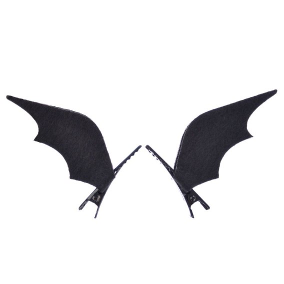 Spinki do włosów z formie czarnych skrzydeł nietoperza. Ciekawy dodatek do stroju na zabawy halloweenowe lub bal przebierańców. Wielkość ok. 6 cm. W opakowaniu znajdują się 2 sztuki.