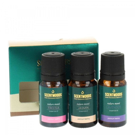 Zestaw trzech olejków zapachowy Freesia, Jasim, Lavender z serii Nature Mood.