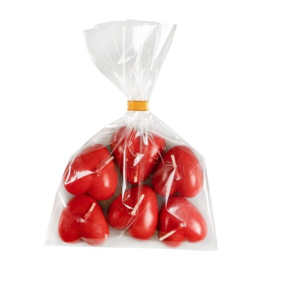 Czerwone świeczki unoszące się na wodzie zapakowne w foliowy woreczek. Wymiar serduszka 4x4cm. 6 sztuk w komplecie.