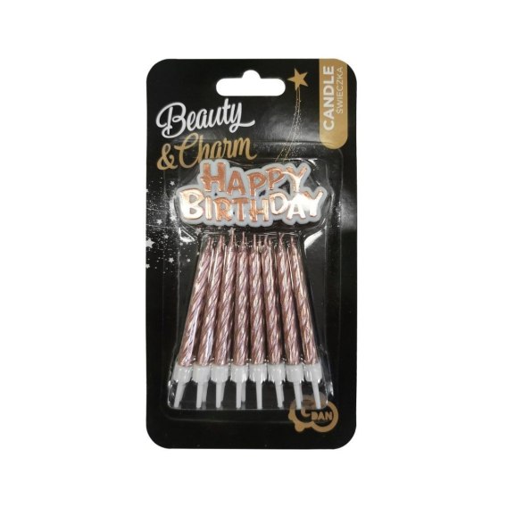Świeczka urodzinowa Happy Birthday metaliczne różowo-złote 16 sztuk Godan (SF-SUHB)