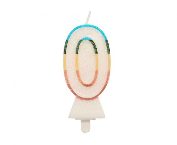 ŚWIECZKA CYFRA 0, TĘCZOWA, BIO BROKAT