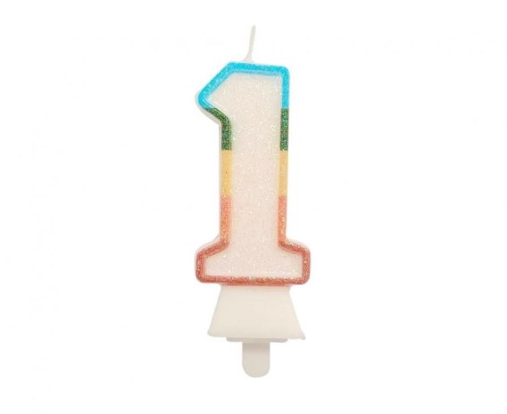 • Świeczka urodzinowa cyferka 1, tęczowa, NOWY BIO BROKAT, 8,5 cm Godan (SW-CBB1)