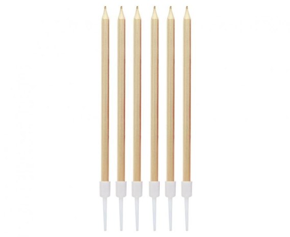 Świeczki B&C metaliczne jasnozłote, 13.5x0.4 cm, 6 szt.