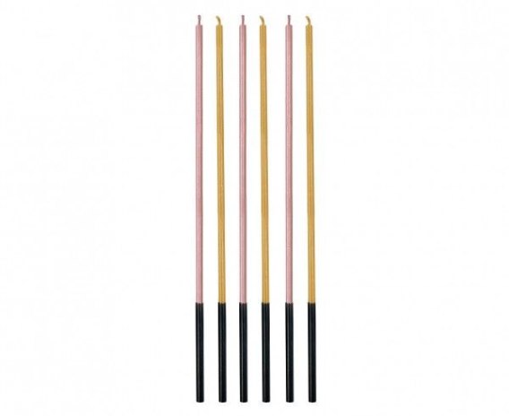 Świeczki B&C metaliczne, róż/złoty, 3x3x170mm, 6szt