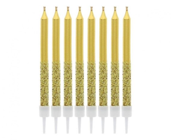 Świeczka urodzinowa metaliczno-brokatowe, złote, 6x0.5 cm, 8 szt. Godan (BH-SMMB)