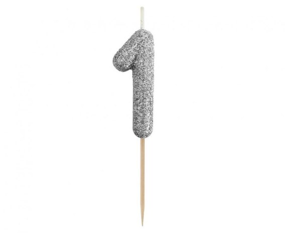 ŚWIECZKA PIKER CYFRA 1, BROKATOWA CZARNA, 1 SZT.