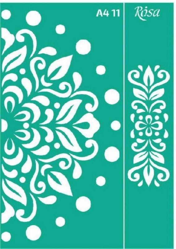 Szablon samoprzylepny do wielokrotnego użytku o wymiarach 21x29,7 cm (A4). Szablon po użyciu można wyczyścić szmatką i nałożyć ponownie na folię zabezpieczającą. Jest użyteczny do momentu, gdy strony klejące będą trzymać się podłoża. Szablon można użyć do dekorowania przedmiotów metodą decoupage. Bardzo dobrze przylega do dekorowanej powierzchni, dzięki czemu wypełnienie wszystkich zakamarków wzoru farbą lub pastą strukturalną jest proste. Bardzo dobrze przylega do dekorowanej powierzchni, dzięki czemu wypełnienie wszystkich zakamarków wzoru farbą lub pastą strukturalną jest proste