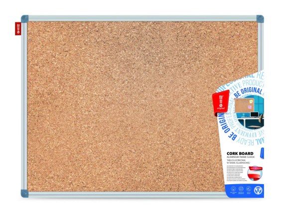 Tablica korkowa MemoBe.Za pomocą pinezek możemy umieszczać na tablicach prace plastyczne dzieci, zdjęcia, plakaty, plany lub ogłoszenia dla szerszego grona osób. Tablice wykonane są z wysokiej jakości ekologicznych, bezpiecznych dla zdrowia człowieka i środowiska naturalnych materiałów. Powierzchnia wykonana jest z naturalnego i drobnoziarnistego materiału korkowego o grub. 0,8 mm pochodzącego z plantacji dębów korkowych znad basenu Morza Śródziemnego. Posiada wiele cennych właściwości, które w istotny sposób podnoszą jego walory użytkowe. Korek jest elastyczny i ściągliwy. Posiada również właściwości antystatyczne, tzn. nie przyciąga i nie pochłania kurzu co powoduje, że tablica długo zachowuje swój estetyczny wygląd. Ponadto, korek jest materiałem nieprzepuszczalnym dla gazów, cieczy lub pary wodnej, posiada słabą przewodność termiczną, a co najważniejsze, nie jest szkodliwy dla zdrowia człowieka i otaczającego środowiska naturalnego. Z tyłu tablicy zastosowano pilśnię, która pełni rolę usztywnienia. Przy większych rozmiarach tablic zastosowano dodatkowe wzmocnienie w formie drewnianych pasków spinających listwy. Rama Classic wykonana jest z anodowanego aluminium w kolorze popielatym o szer. 18 mm i grub. 16 mm. Narożniki ramy są również w kolorze popielatym.W zestawie dołączony jest komplet wkrętów i kołków rozporowych, aluminiowa półka w kolorze popielatym o dług. 30 cm z plastikowymi zaślepkami, które zabezpieczają brzeg półki, instrukcja montażu. Możliwość montażu tablicy w pozycji pionowej lub poziomej w czterech rogach. Produkt przeznaczony jest do użytku wewnętrznego. Klasyczna i wciąż niezastąpiona w każdej szkole, przedszkolu lub w biurze tablica korkowa jest doskonałym nośnikiem informacji. Sprawdza się zarówno jako funkcjonalny i praktyczny element wyposażenia klas szkolnych, korytarzy, gabinetów nauczycieli, jak i stanowi elegancki i estetyczny przedmiot dekoracyjny w biurze lub w domu. Tablicę cechuje niezwykła trwałość i sztywność dzięki zastosowaniu wysokiej jakości materiałów, które zapewniają bezpieczeństwo podczas ich montażu i użytkowania. Okres gwarancji na tablicę wynosi 2 lata. Użytkowanie - zaleca się używanie pinezek o dług. nieprzekraczającej 7 mm, które zapobiegają rysowaniu i niszczeniu ściany. Pinezki należy wbijać prostopadle do powierzchni tablicy co zapobiega uszkodzeniu korka podczas jego użytkowania. Tablice korkowe MemoBe posiadają Certyfikat Zgodności, który potwierdza, że wyrób spełnia wymagania zawarte w normie PN-EN 14434:2010, tzn. jest bezpieczny podczas jego montażu i użytkowania. Produkt opatrzony jest znakiem B (Bezpieczeństwo).
