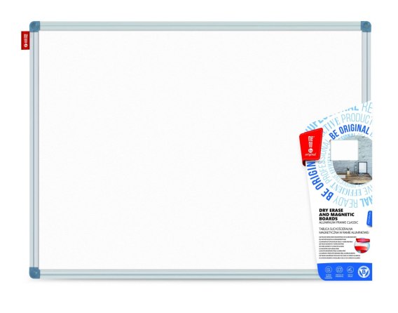 Tablica suchościeralna magnetyczna MemoBe. Właściwości suchościeralne pozwalają na pisanie po powierzchni tablicy markerami suchościeralnymi lub kredowymi. Natomiast właściwości magnetyczne dają możliwość umieszczania na tablicy rysunków, plakatów i ogłoszeń za pomocą magnesów. Powierzchnia tablicy wykonana jest z wysokiej jakości stali lakierowanej w kolorze białym. Z tyłu tablicy zastosowano pilśnię, która pełni rolę usztywnienia oraz jako dodatkowe wzmocnienie dla największych formatów tablic (od 240x100 cm wzwyż) blachę ocynkowaną. Rama Classic wykonana jest z anodowanego aluminium w kolorze popielatym o szer. 18 mm i grub. 16 mm. Narożniki ramy są również w kolorze popielatym. W zestawie dołączony jest komplet wkrętów i kołków rozporowych, aluminiowa półka w kolorze popielatym o dług. 30 cm z plastikowymi zaślepkami, które zabezpieczają brzeg półki, marker suchościeralny oraz instrukcja montażu. Możliwość montażu tablicy w pozycji pionowej lub poziomej w czterech rogach. Tablica polecana jest jako podstawowe wyposażenie dla wszystkich jednostek edukacyjnych i instytucji biurowych. Klasyczna i modernistyczna konstrukcja oraz kunsztowne wykończenie sprawiają, że tablica doskonale wkomponowuje się w wystrój każdej klasy szkolnej, sali wykładowej i biura. Produkt przeznaczony jest do użytku wewnętrznego. Ponadto tablica stanowi znakomite wsparcie dla nauczycieli jako pomoc dydaktyczna oraz olbrzymie udogodnienie dla liderów spotkań biznesowych, którzy mogą wzbogacać swoje prezentacje i wykłady o komunikaty wizualne, co z kolei wpływa na ich szybkie zapamiętywanie. Tablicę cechuje niezwykła trwałość i sztywność dzięki zastosowaniu wysokiej jakości materiałów, które zapewniają bezpieczeństwo podczas ich montażu i użytkowania. Dzięki wysokiej jakości powierzchni, prezentowane na tablicy treści są dobrze widoczne i czytelne. Szczególną zaletą jest bardzo dobra ścieralność markera bez pozostawiania smug i plam na powierzchni tablicy. Okres gwarancji na powierzchnię wynosi 10 lat.Czyszczenie tablicy - za pomocą miękkiej gąbki lub ściereczki. Do pisania po tablicy należy używać wyłącznie markerów przeznaczonych do tablic. Zaleca się systematycznie czyszczenie i konserwację powierzchni za pomocą dedykowanych płynów do tablic.Tablice suchościeralne magnetyczne MemoBe posiadają Certyfikat Zgodności, który potwierdza, że wyrób spełnia wymagania zawarte w normie PN-EN 14434:2010, tzn. jest bezpieczny podczas jego montażu i użytkowania. Produkt opatrzony jest znakiem B (Bezpieczeństwo).