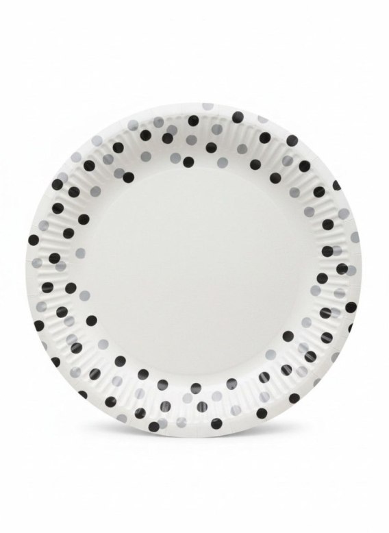 Talerz jednorazowy Confetti Silver-Black papier śr. 230mm 8 szt Paw (PPL8000508)