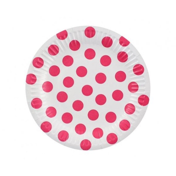 Talerzyki pap. Groszki, magenta, 18 cm, 6 szt.