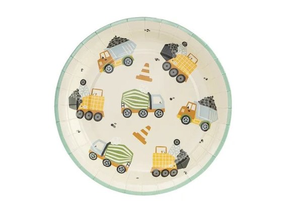Talerzyki papierowe Pojazdy budowlane, mix kolorów, wymiary ok. 18 x 18 cm. (1 op. / 6 szt.)