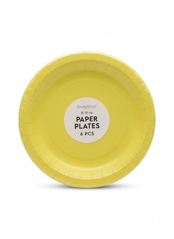 Talerzyki papierowe okrągłe w kolorze żółtym, średnica ok. 18 cm. (1 op. / 6 szt.)