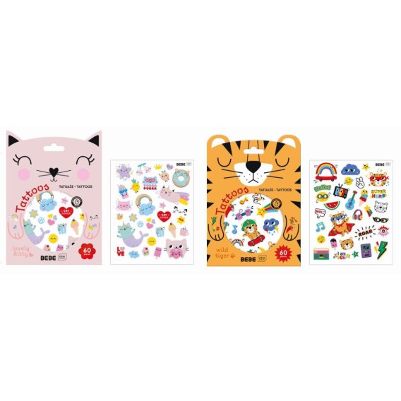 Zestaw „BEBE FRIENDS" - 60 tatuaży dla dzieci to świetny sposób na urozmaicenie zabawy - przyciąga wzrok kolorowymi wzorami i jest łatwy w użyciu. To doskonały pomysł na drobne upominki, gadżety na imprezy i prezenty dla dzieci.