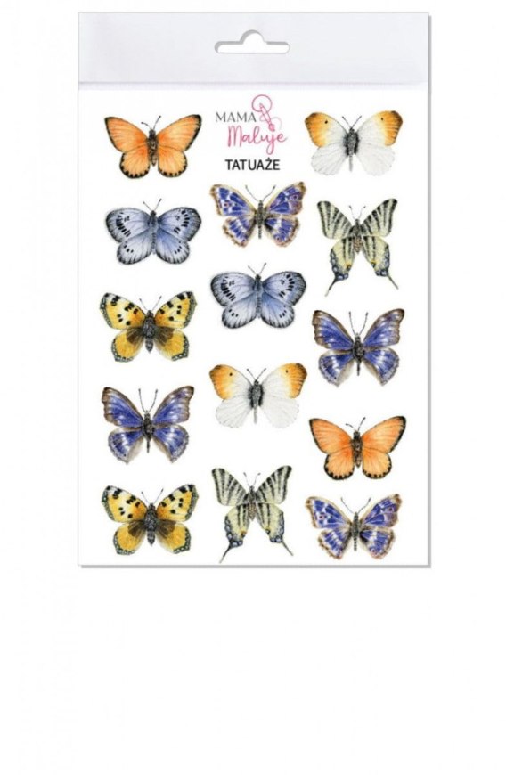 Tatuaże zmywalne Motyle zostały wykonane na podstawie ręcznie malowanych ilustracji akwarelowych. Uwzględniają szczegóły i wyjątkowy charakter każdego motyla. Na arkuszu znajduje się 14 tatuaży.