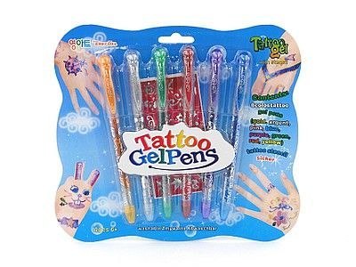 Długopisy kolorowe do tatuaży 6szt; brokatowe; 21x19cm, B/C