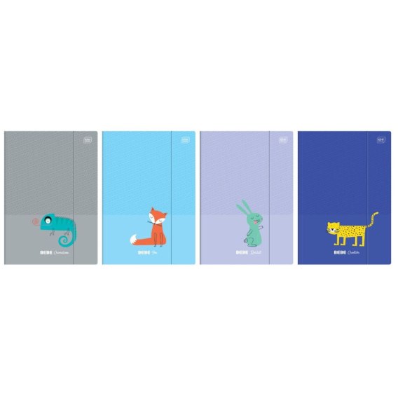 Supersztywne teczki z gumką w formacie A4+, wykonane z wysokiej jakości surowca, zabezpieczone hybrydowym i błyszczącym lakierem. Kolorowy zadruk po wewnętrznej stronie. Zamknięcie za pomocą solidnej gumki. W kolekcji 8 wzorów z wizerunkami zwierzaków z kolekcji B&B.