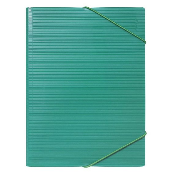 Teczka A4 na dokumenty z gumką Kolor : zielony, nieprzeźroczysty Struktura : grawerowane paski Grube, wytrzymałe tworzywo sztuczne wysokiej jakości Producent : Factis Hiszpania